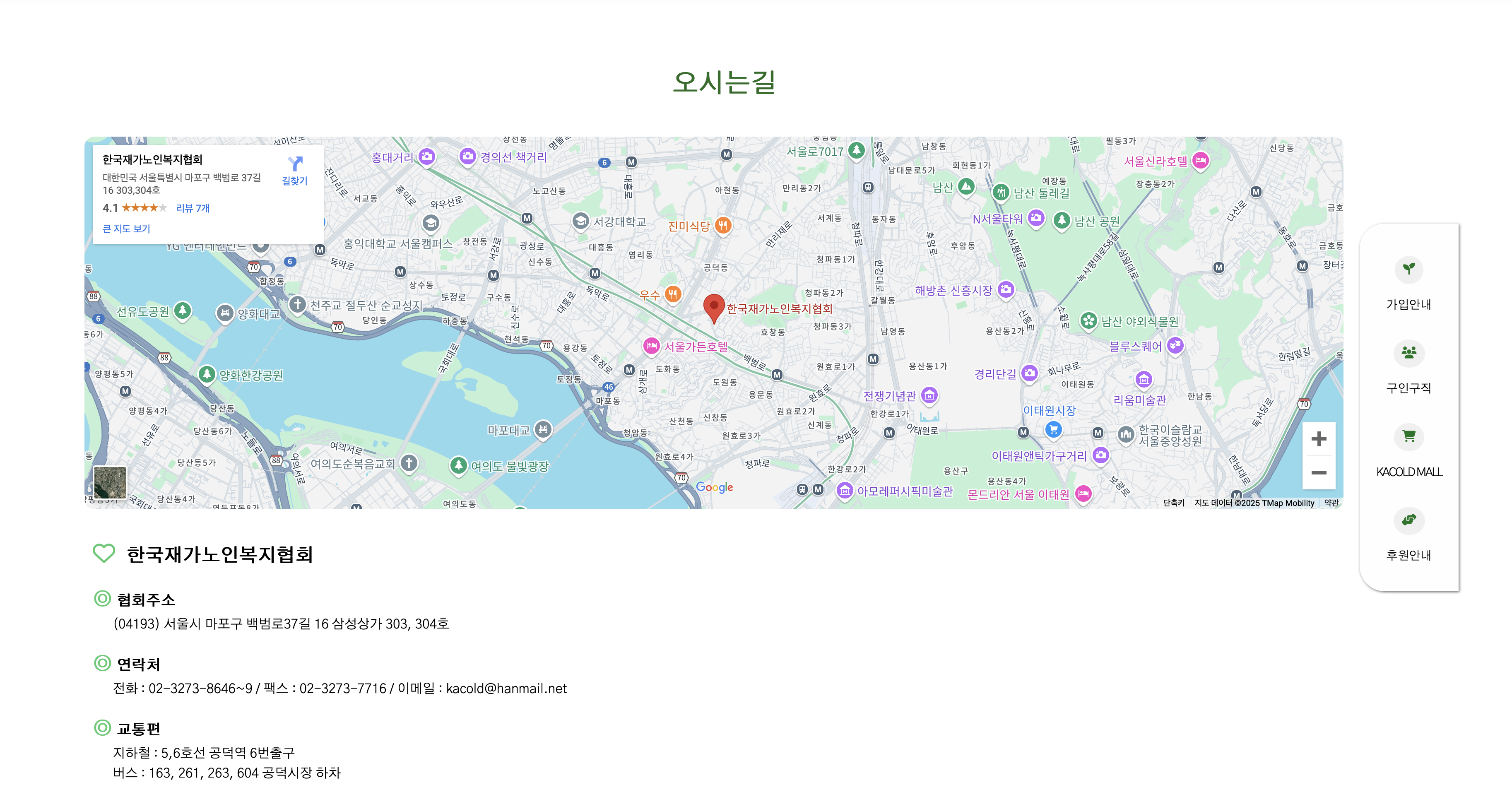 - 한국 재가노인복지협회에 대한 문의는 어떻게 하나요?